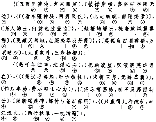 再以清人孙髯翁所作脍炙人口的《昆明大观楼长联》为例,分析如下: